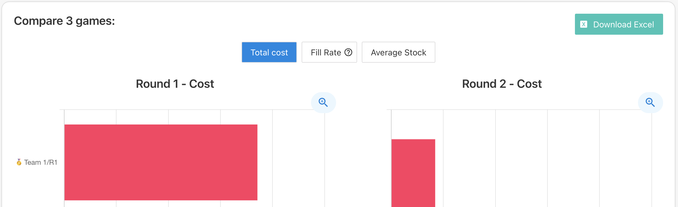 You can use the below charts to zoom on what happened during the game (such as the bullwhip effect) and use them as a base for discussion.