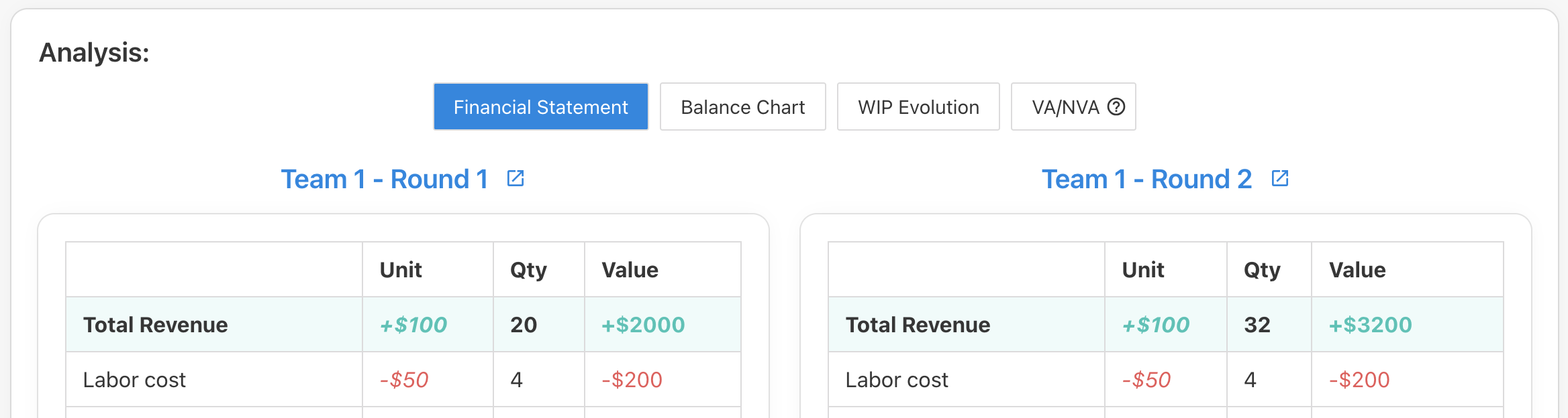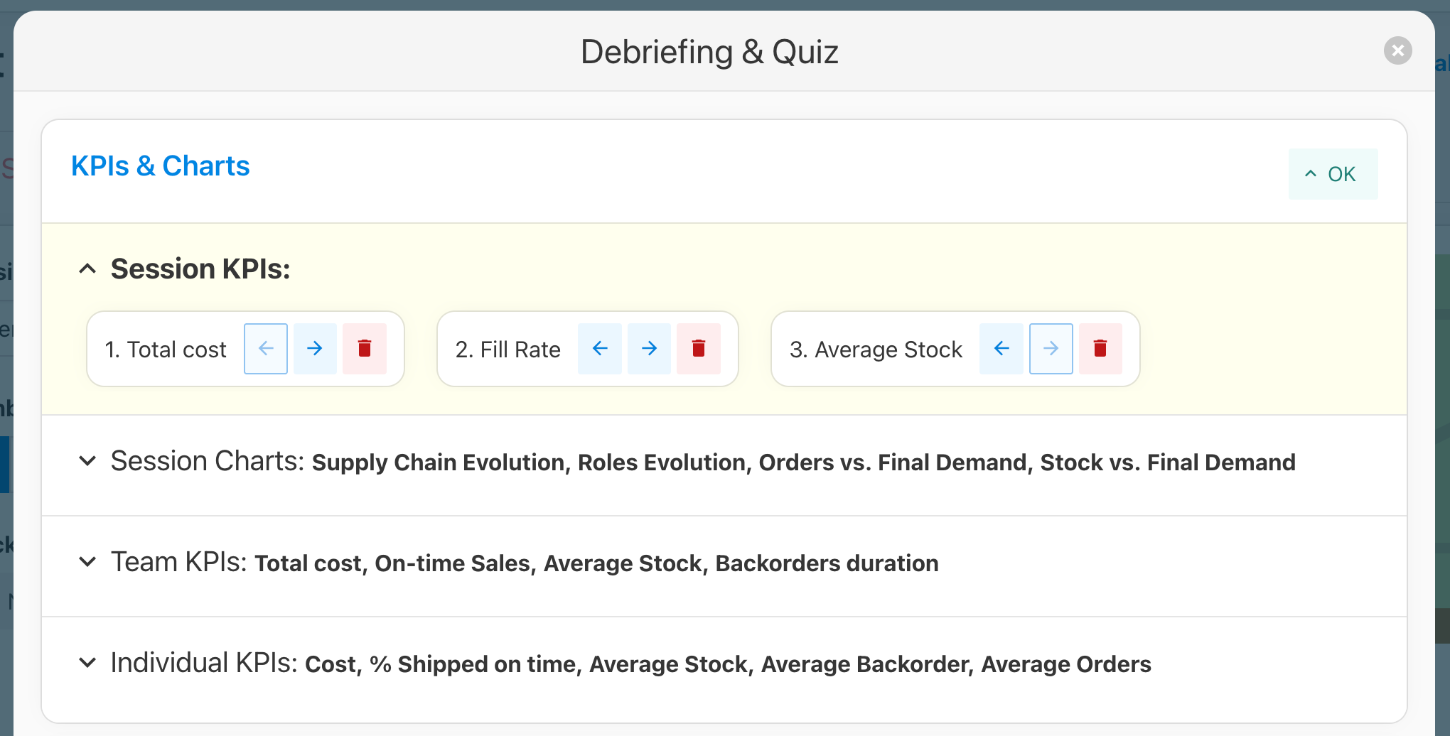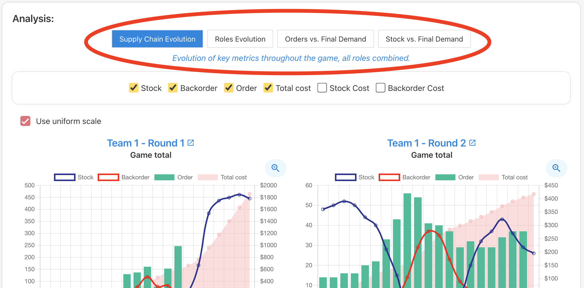 Moreover, the instructor can use the Session Results page to easily compare the performance of each team, and the evolution through the rounds.