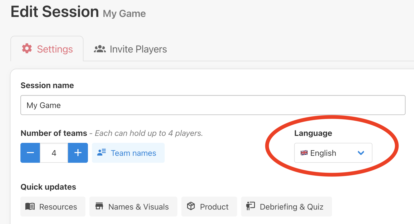 - Automatic Translation: When you change the language of an existing session, the platform will automatically attempt to translate standard role names and messages. For example: 🇬🇧 Yellow becomes 🇫🇷 Jaune, or 🇬🇧 Wholesaler becomes 🇪🇸 Mayorista.